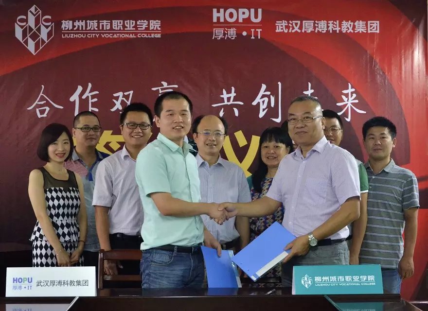7月23日上午,武漢厚溥教育科技有限公司在柳州城市職業(yè)學(xué)院,與校方簽訂校企合作協(xié)議聯(lián)合辦學(xué),建立“厚溥軟件學(xué)院”。武漢厚溥教育科技有限公司常務(wù)副總兼技術(shù)總監(jiān)翁高飛、戰(zhàn)略發(fā)展部市場總監(jiān)李薇薇出席簽約儀式,柳州城市職業(yè)學(xué)院院長謝名洋、副院長黃鋒、黨政辦主任黃?、教務(wù)處處長陳柳艷、信息工程系主任唐子蛟、系黨總支書記李永強(qiáng)共同參加簽約儀式。