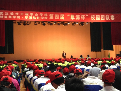 校學(xué)工處副處長(zhǎng)張水新宣布:武漢軟件工程職業(yè)學(xué)院計(jì)算機(jī)學(xué)院、厚溥軟件學(xué)院第四屆“厚溥杯”校園團(tuán)隊(duì)賽正式開(kāi)始。