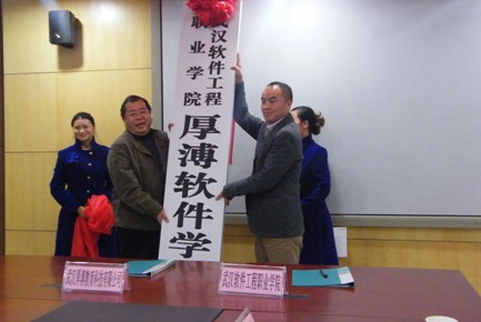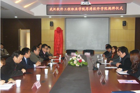 2013122日下午1500武漢厚溥教育科技有限公司與武漢軟件工程職業學院(以下簡稱武軟)在武軟實訓中心二樓會議室舉行了校企合作共建院系厚溥軟件學院揭牌儀式。