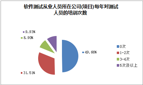 然而,在被調(diào)查者所在公司中,測(cè)試人員與開(kāi)發(fā)人員的比例在1:4及以上的高達(dá)55.13%。在這些公司中,49.66%的公司每年對(duì)測(cè)試人員進(jìn)行的培訓(xùn)次數(shù)為0。也就是說(shuō),將近一半的軟件測(cè)試人員在工作后沒(méi)有進(jìn)行培訓(xùn)學(xué)習(xí)的機(jī)會(huì),這就要求想從事軟件測(cè)試的人員在入職前培訓(xùn)相關(guān)的技能,確保工作可以順利開(kāi)展。