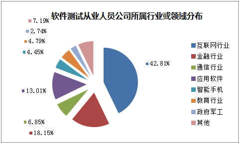 數(shù)據(jù)顯示,被調(diào)查測(cè)試人員所屬公司中,互聯(lián)網(wǎng)行業(yè)及金融行業(yè)分別占42.81%和18.15%,綜合占比超過(guò)六成,這也印證了經(jīng)濟(jì)結(jié)構(gòu)調(diào)整的成果,目前互聯(lián)網(wǎng)行業(yè)和金融行業(yè)受到了投資者和個(gè)人的青睞,企業(yè)需求急劇上升,軟件測(cè)試人才缺口巨大。