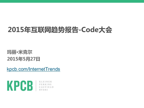 被譽(yù)為“互聯(lián)網(wǎng)女皇”的KPCB合伙人瑪麗·米克(Mary Meeker)今日發(fā)布了年度互聯(lián)網(wǎng)報(bào)告。這是米克連續(xù)第20年發(fā)布互聯(lián)網(wǎng)報(bào)告,報(bào)告涵蓋了廣泛的趨勢(shì)。以上為新浪科技制作的中文版報(bào)告。